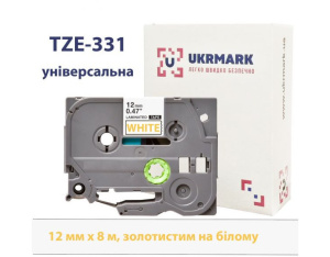 Стрічка для принтера етикеток UKRMARK B-T331P, ламінована, 12мм х 8м, gold on white, аналог TZe331 (900783)