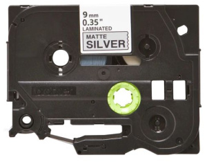 Стрічка для принтера етикеток UKRMARK B-TM9321P, 9мм х 8м, black on matte silver, совместимая с TZeM921, ламинированная (900501)