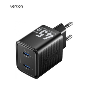 Зарядний пристрій Vention 2xUSB-C PD45W GaN black (FEFB0-EU)
