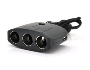 АЗУ розгалужувач Olesson 1522, 12V-2*12V+USB, Black, Blister