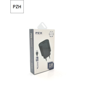 Набір 2 в 1 СЗУ With iPhone Cable 110-240V PZX P23, 2xUSB, 2,4A, Black, Blister-box