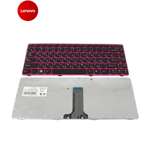 Клавіатура для LENOVO IdeaPad Z370, Z470, G470AH, G470GH (RU Black, розова рамка) Оригінал