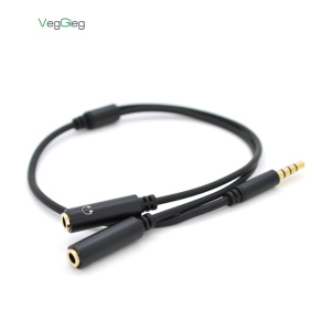 Розгалужувач аудіо VEGGIEG AM2-B для навушників і мікрофону, Jack 3.5 (тато) 4 pin => 2 * Jack 3.5 (мама) 3 pin, 0.2m, круглий, Пакет