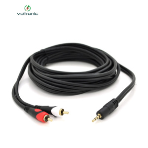 Кабель DC3.5 (тато) => 2хRCA (тато), GOLD Jack, CU, Stereo, круглий, Black, 3,0 м, (Пакет) преміум Q100