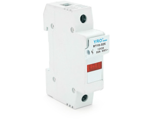Корпус під плавкий запобіжник YRO RT18-32 / 1P, 32A, 500 / 690V, зі світловим індикатором, DIN, запобіжник під 10*38mm, контакти латунь. 78*17.6mm