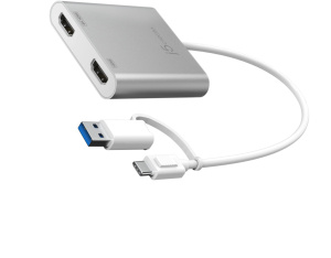 Адаптер J5create USB-C/A - 2 HDMI (M/F), Silver (JCA365-N)