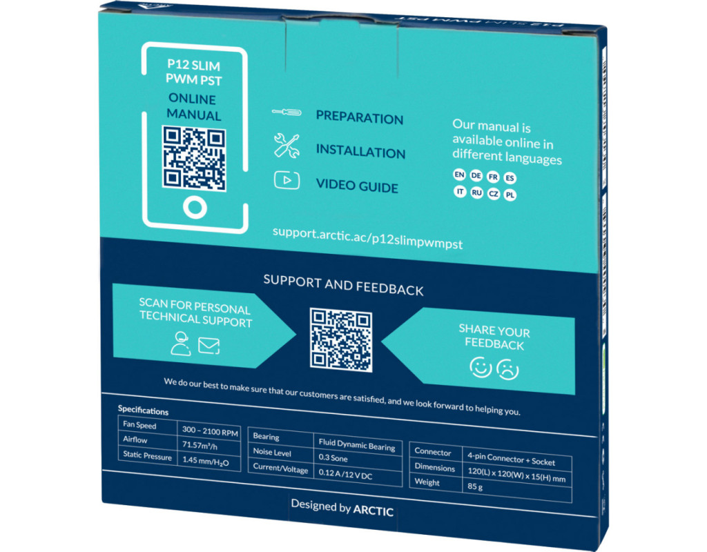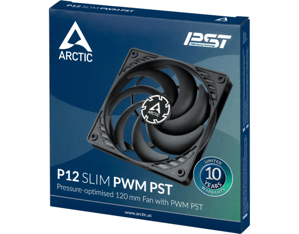 Вентилятор для корпусу Arctic P12 Slim PWM PST глибиною 15 мм гарантує ефективне охолодження навіть при підвищеному опорі повітря. Завдяки функції PWM PST швидкість вентилятора P12 Slim PWM PST можна регулювати синхронно з усіма іншими вентиляторами разом. |