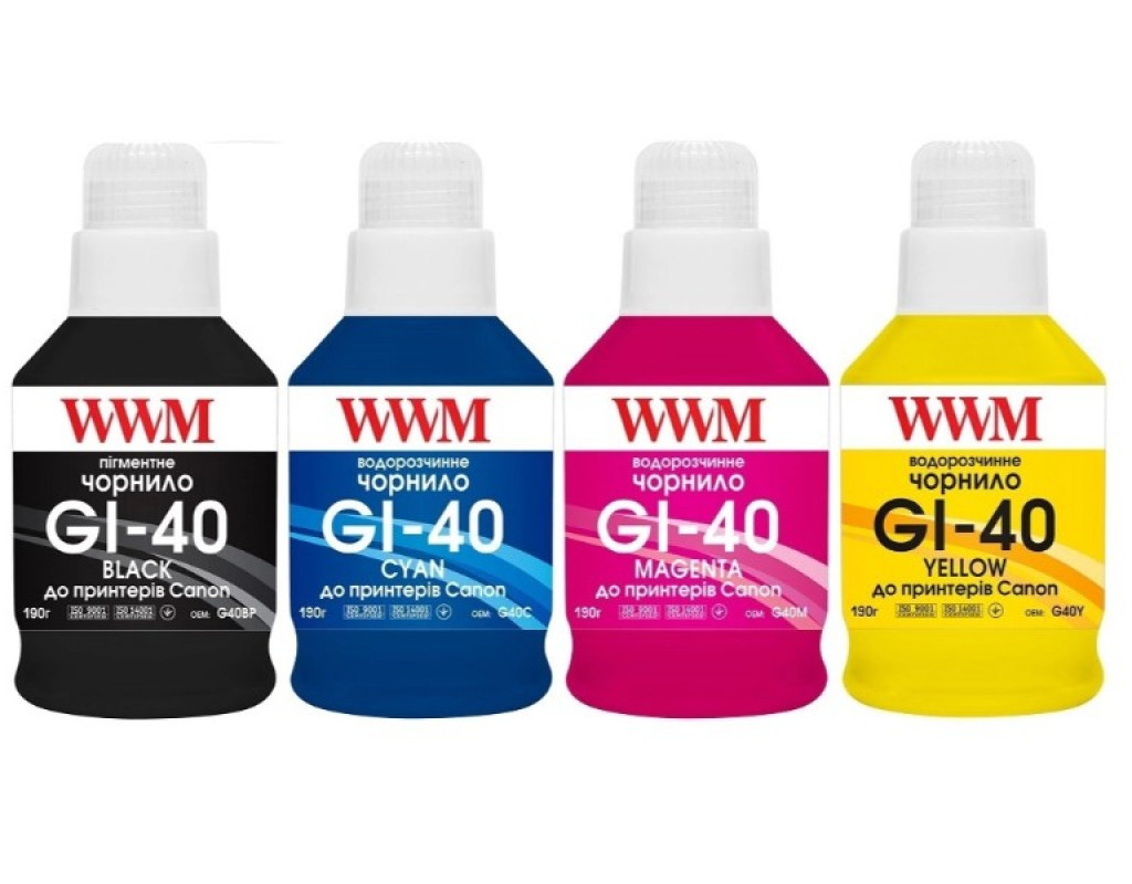 Чорнило WWM Canon GI-40 G5040/G6040 4х190г BP/C/M/Y KeyLock (G40SET4)