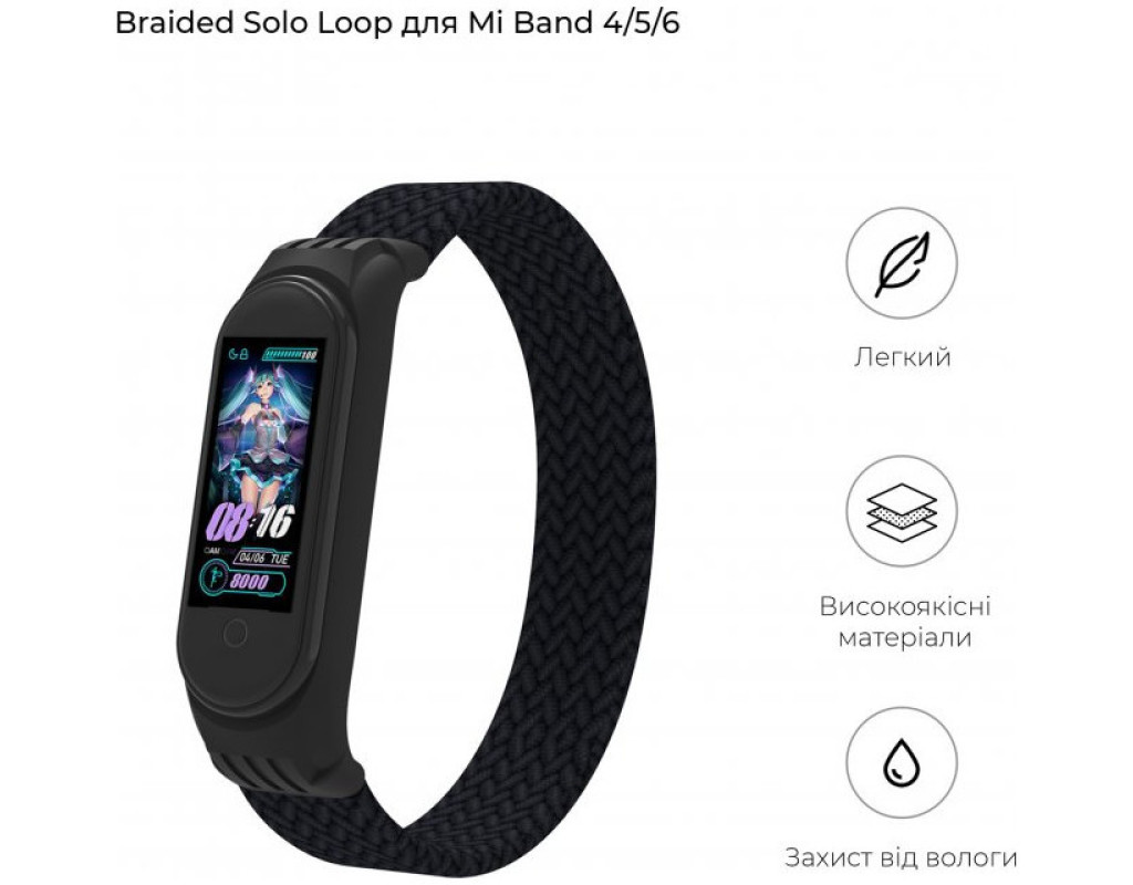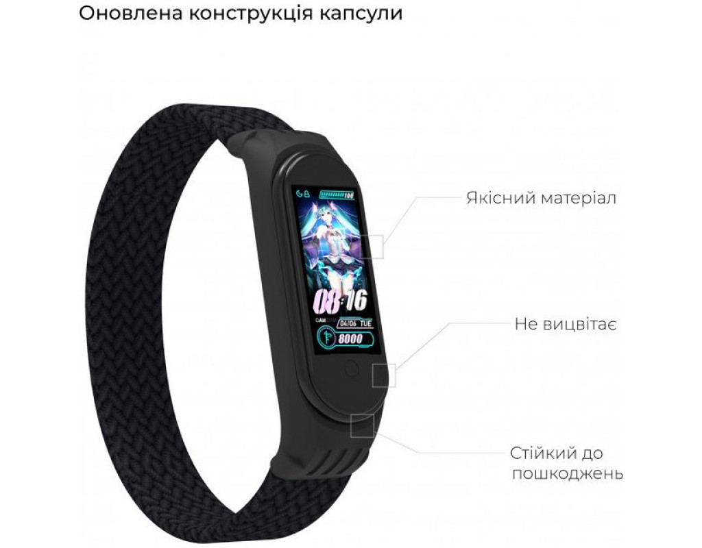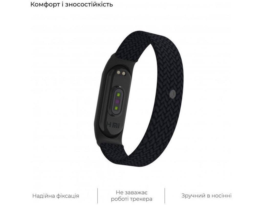 Ремінець до фітнес браслета Armorstandart Braided Solo Loop для Xiaomi Mi Band 4/5/6 Black size S (ARM59177)