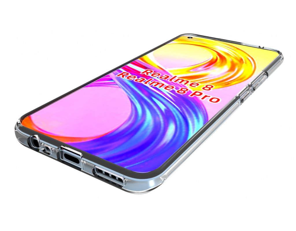 сумісність з моделями - Realme 8, Realme 8 Pro, Тип чохла для телефону - накладка, Призначення - модельний, Матеріал - силікон, Колір - прозорий
