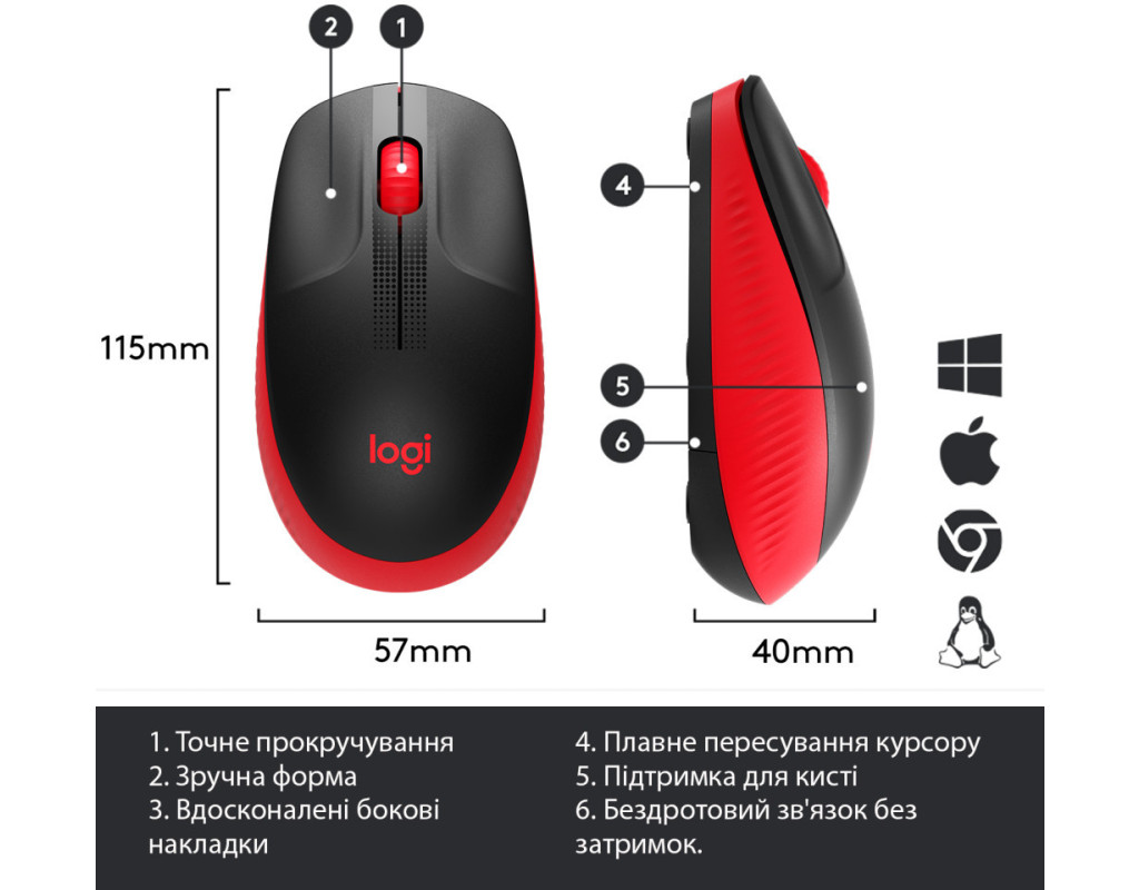 | Мишка Logitech M190 Red (910-005908) — ідеальний вибір для тих, хто цінує комфорт та практичність під час роботи за комп'ютером чи ноутбуком. В першу чергу, увагу привертає її повнорозмірна класична форма, яка розроблена для максимального комфорту як для правші, так і для лівші. Контурні лінії цієї мишки ідеально повторюють природний вигин руки, що робить її незамінною для довготривалого користування, без втоми в зап'ястях. Одна з головних переваг Logitech M190 — це зручні зубчасті кнопки, які забезпечують точне розташування пальців, тим самим покращуючи загальну взаємодію з пристроєм. Миша також має оптичний датчик з максимальною роздільною здатністю у 1000 dpi, що дозволяє легко і без зусиль виконувати найрізноманітніші завдання, починаючи від простого перегляду веб-сторінок до точного редагування графічних файлів. Бездротове підключення через USB адаптер 2.4 ГГц гарантує стабільний зв'язок без затримок на відстані до 10 метрів. Це дозволяє вільно рухатися і уникати незручностей, пов'язаних з кабелями. Більше того, енергоефективність акумуляторної системи не може не вражати: до 18 місяців роботи від однієї батареї типу AA без потреби в зарядці. А вбудований автоматичний режим економії енергії ще й додатково продовжить час роботи пристрою. Ще однією особливістю цієї моделі є універсальність використання, що робить Logitech M190 ідеальним вибором як для офісного середовища, так і для дому. Її розміри — 115.4 x 66.1 x 40.3 мм — ідеально підходять для різних типів рук, забезпечуючи комфорт при будь-яких задачах. А стильний червоний колір не лише додає пристрою унікальності, а й стане яскравим акцентом вашого робочого простору. Виберіть Logitech M190 Red, якщо хочете отримати надійний і зручний інструмент для роботи. Ця мишка поєднує в собі високу якість, сучасний дизайн і передові технології, що робить її бездоганним помічником у повсякденному житті. |