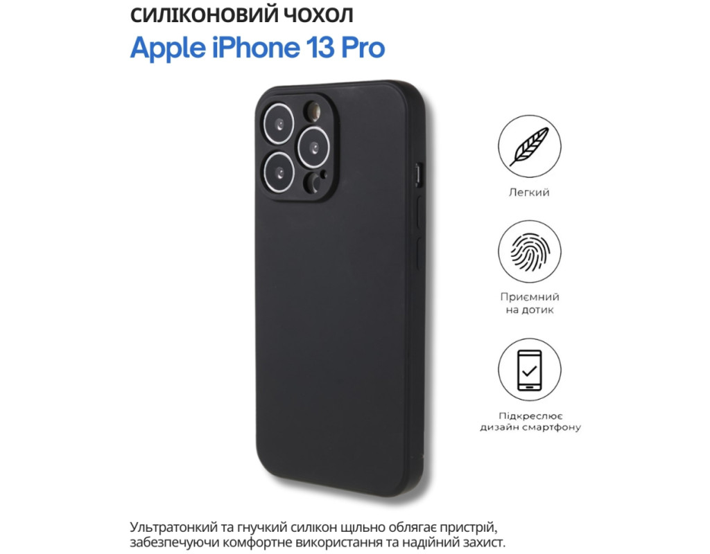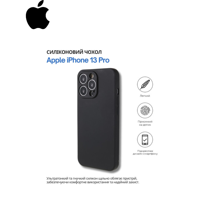 сумісність з моделями - Apple iPhone 13 Pro, Тип чохла для телефону - накладка, Призначення - модельний, Матеріал - силікон, Колір - чорний