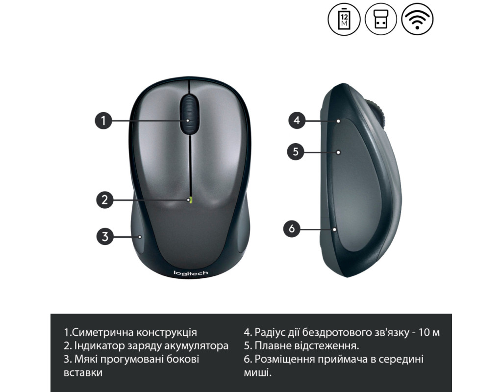 | Мишка Logitech M235 Grey (910-002201) — це не просто пристрій введення, а ваш надійний супутник у цифровому світі, що поєднує в собі простоту використання, якість і стиль. Вона розроблена спеціально для тих, хто цінує комфорт і ефективність під час роботи за ноутбуком або настільним ПК. Ергономічний дизайн миші зроблений з урахуванням анатомії руки, тому ви можете з легкістю працювати як лівою, так і правою рукою. М'які прогумовані вставки забезпечують надійне зчеплення, знижуючи навантаження на кисть і запобігаючи ковзанню руки навіть під час тривалого використання. Важливою перевагою даної моделі є її бездротове підключення через USB адаптер на частоті 2.4 ГГц. Завдяки цьому, ви отримаєте свободу руху без зайвих проводів і затримок у реакції курсора. Нано-приймач компактний і завжди готовий до роботи: просто підключіть його до свого ноутбука, і він автоматично налаштується під ваші потреби. Унікальна функція Plug-and-Forget дозволяє практично забути про нього, адже він не займає багато місця. Оптичний датчик з максимальною роздільною здатністю 1000 dpi гарантує плавний і точний контроль курсора на будь-якій поверхні, що робить її ідеальною для повсякденної роботи та навігації в інтернеті. Три зручні кнопки, включаючи колесо прокрутки, надають миттєвий доступ до всіх необхідних функцій. Ця мишка також економічна в плані енергоспоживання. Вона працює на одній батарейці типу AA, яка забезпечує до 12 місяців стабільної роботи. Менеджер живлення від Logitech оптимізовано до можливості виходу в сплячий режим, коли мишею не користуються, що додає їй ще більшої енергоефективності. Компактні розміри миші (95 x 56 x 38 мм) і стильний сірий колір роблять її надзвичайно привабливою та універсальною, задовольняючи навіть найвибагливіші смаки. З Logitech M235 Grey ви відчуєте справжнє задоволення від роботи, насолоджуючись комфортом і надійністю кожен день. Оберіть Logitech для бездоганної якості та максимальної продуктивності! |