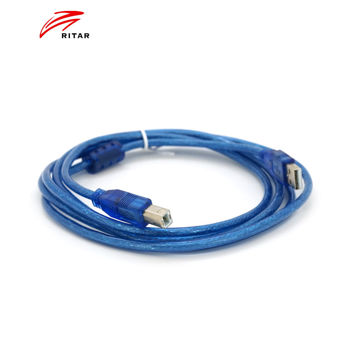 Кабель USB 2.0 RITAR AM / BM, 2.0m, 1 ферит, прозорий синій