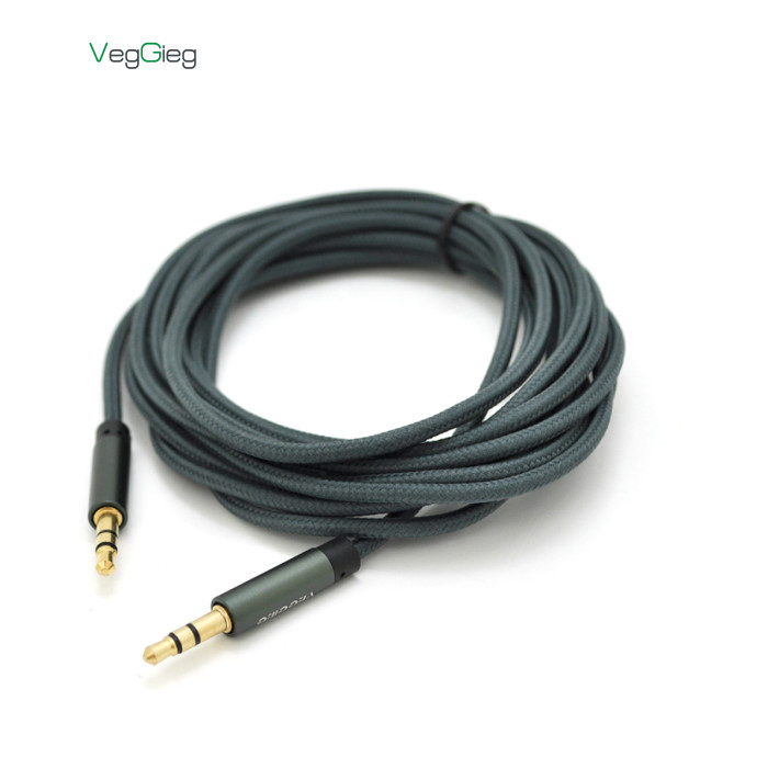 | Кабель VEGGIEG AB-3 AUX Audio DC3.5 тато-тато 3.0м, GOLD Stereo Jack, оплетка, (круглий) Black cable, Пакет |