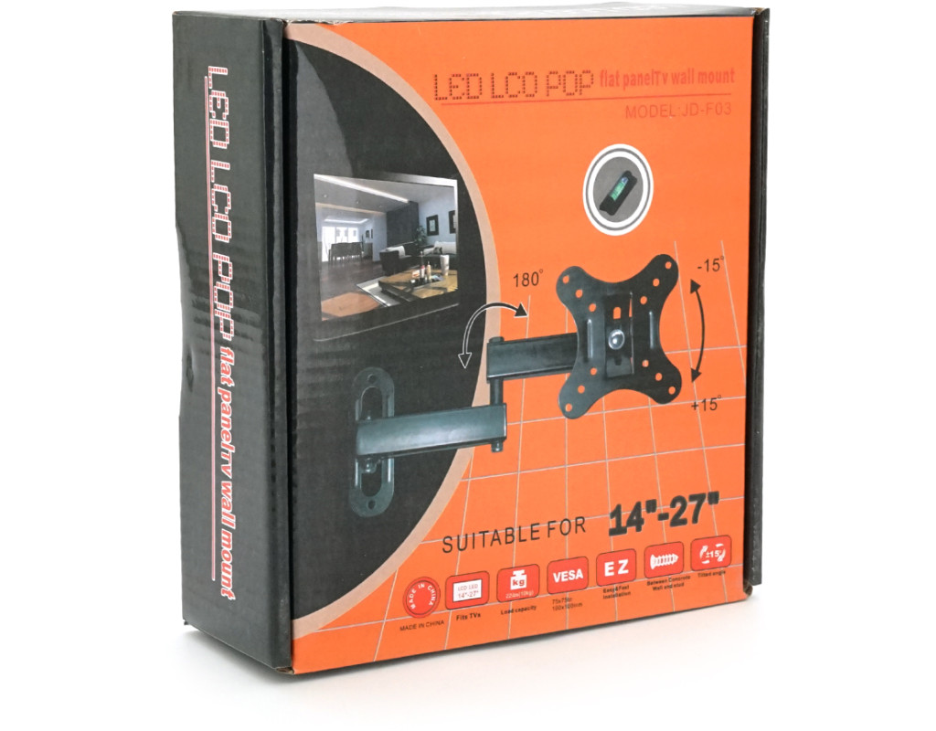 | Кронштейн для TV PiPo PP-F03 – це ідеальне рішення для телевізора, що поєднує в собі естетику та функціональність. Цей надійний кронштейн забезпечує надійне кріплення телевізора на стіні, надаючи кімнаті стильний і сучасний вигляд. особливості: - Універсальна сумісність: підходить для телевізорів з діагоналлю від 14' до 27', роблячи його універсальним вибором для різних моделей. - Надійна Конструкція: Максимальне навантаження до 10 кг гарантує, що ваш телевізор міцно триматиметься на стіні. - Поворот і Нахил: 4 осі обертання та можливість нахилу забезпечують оптимальний кут огляду та задовольняють ваші потреби у налаштуванні. - Проста Установка: У комплекті з кронштейном поставляється монтажний рівень та стінове кріплення, що робить процес встановлення максимально простим. - Задовольняє стандартам VESA: Сумісний з різними стандартами VESA – 100x100 мм, 50x50 мм, 75x75 мм, що дозволяє використовувати його з більшістю телевізорів. Технічні характеристики: • Максимальна діагональ: 27' • Максимальне навантаження: 10 кг • Максимальна відстань від стіни: 300 мм • Мінімальна діагональ: 14' • Кількість осей обертання: 4 • Кількість екранів для монтажу: 1 • Спосіб встановлення: настінний • Тип регулювання: Похило-поворотний • Кут нахилу: -15 ° (+15 °) • Кут повороту: 180 ° / 180 ° • Колір чорний |