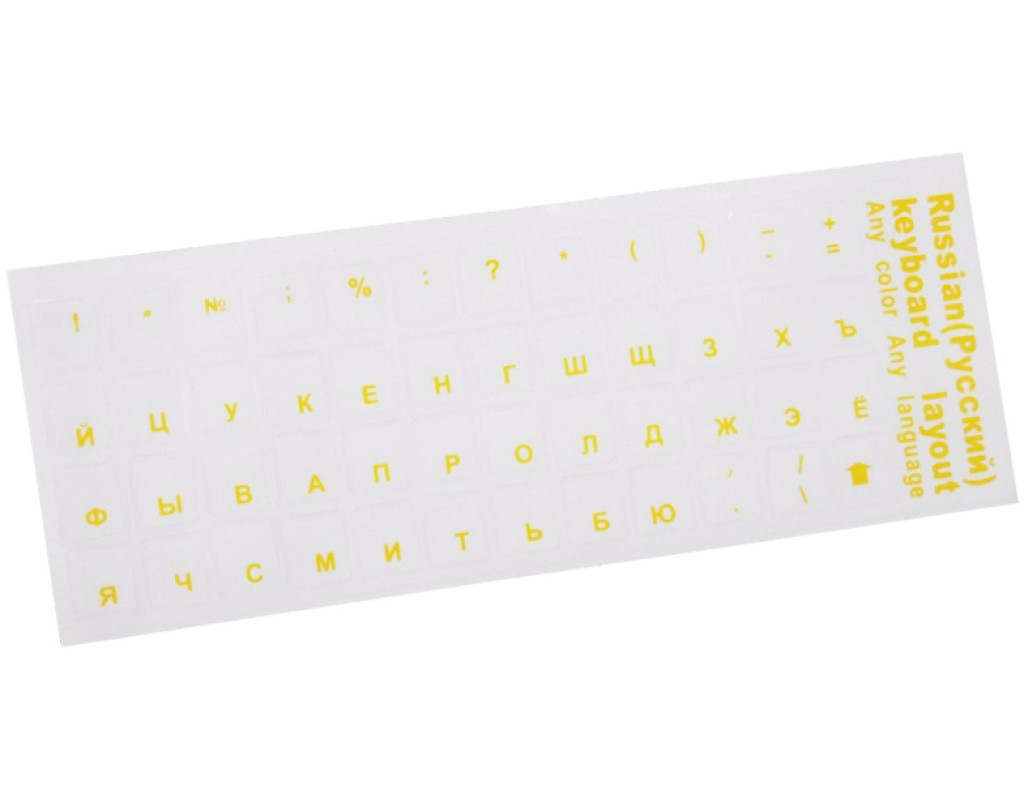 Наклейки на прозорі клавіатуру з жовтими літерами Рус. Q100