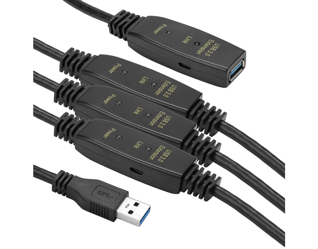 За допомогою цього активного подовжувального кабелю можна підключати віддаленіші пристрої USB 3.0. Скористайтеся стабільними з'єднаннями та уникайте втрат потужності навіть на великих відстанях за допомогою вбудованого підсилювача сигналу. Світлодіодний індикатор роботи сигналізує стан підсилювача сигналу. Підключайте пристрої USB 3.0, такі як принтери або сканери, до комп'ютера або ноутбука навіть на великих відстанях. Інтегрована електроніка завжди забезпечує плавну передачу даних без втрат. Більше ніяких проблем із підключенням при використанні довших USB-кабелів. Переваги: Стабільна передача сигналу завдяки активному підсилювачу сигналу. Відсутність втрат потужності, незважаючи на довжину кабелю 30 м-коду. Швидкість передачі до 5 Гбіт/с. Світлодіодний індикатор роботи. |