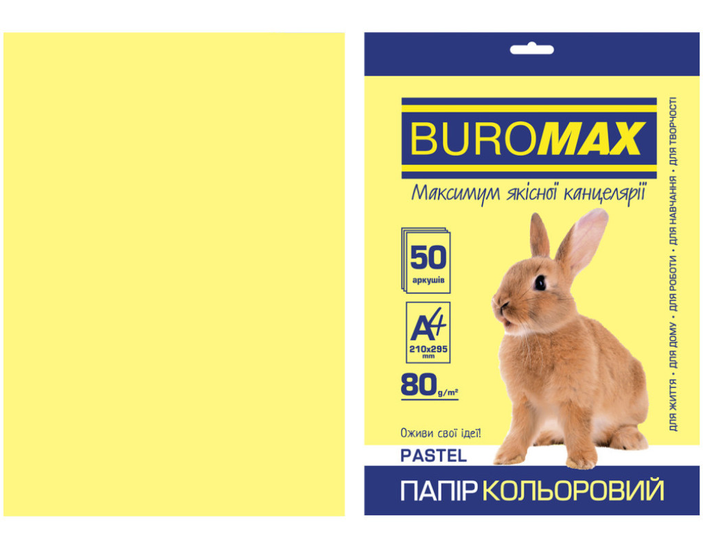 Папір Buromax А4, 80g, PASTEL yellow, 50sh (BM.2721250-08)