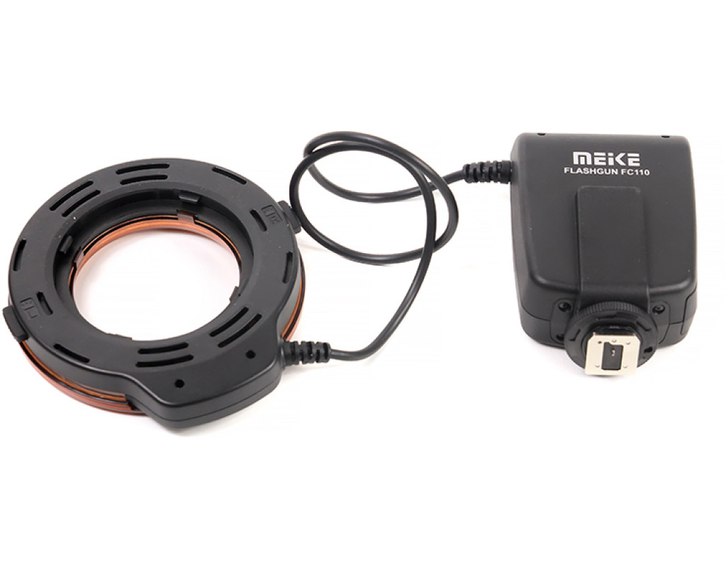 | Кольцевая макровспышка Meike FC110 - незаменима при съемке мелких предметов, таких как насекомые, цветы или просто предметная съемка. Источник света (LED светодиоды) располагается вокруг объектива, тем самым давая равномерное освещение без теней и хороший контраст. Вспышка FC-110 крепится к объективу при помощи специальных крепежных колец (в комплекте: 52 мм, 55 мм, 58 мм, 62 мм, 67 мм, 72 мм, 77 мм). Эти кольца закручиваются на резьбу объектива, а к ним уже крепиться на зажимах сама вспышка. Управляющий модуль Meike MK-FC110 крепиться на горячем башмаке. Можно использовать вспышку для съемки видеосюжетов. Эффективное расстояние использования до 2 м. Режимы вспышки: - Flash. В этом режиме вспышка вспыхивает в момент нажатия на кнопку спуска затвора. Съемка в режиме TTL невозможна. - Light (постоянный свет). Вспышка светит в "пилотном" режиме, т.е. светит тусклым светом для наводки автофокуса, а при нажатии на кнопку спуска -- вспыхивает на полную мощность. - Режимы L и R. В этих режимах светиться только левая или правая сторона вспышки. |