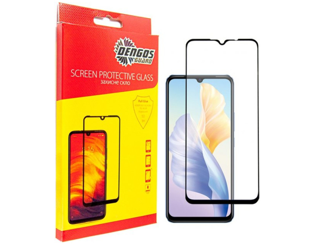 В комплекте: защитное стекло DENGOS Full Glue, 2 салфетки для обработки экрана (влажная и сухая), стикер для удаления пыли, пипетка с силиконовым маслом. Инструкция по применению: