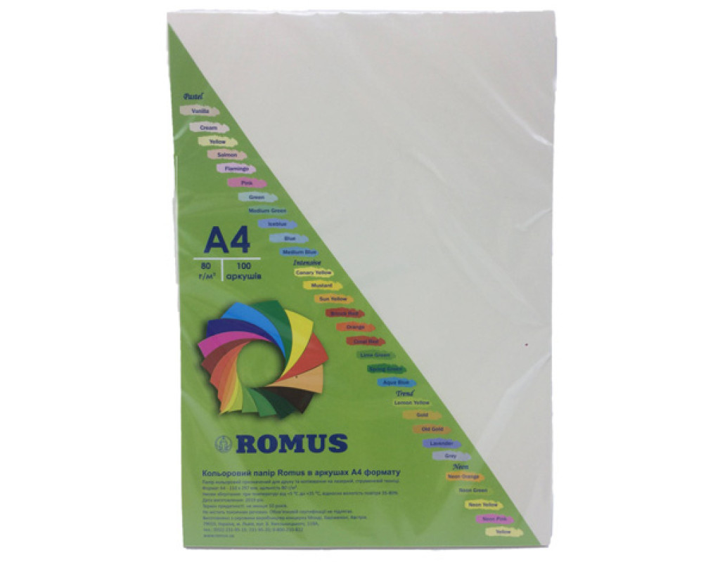 Папір кольоровий Romus формату A4 допоможе організовувати ваші щоденні офісні завдання, підійде для різних видів творчості та для друку презентаційних матеріалів. Універсальний папір, для вирішення широких задач, де вимагається колір.Особливості: