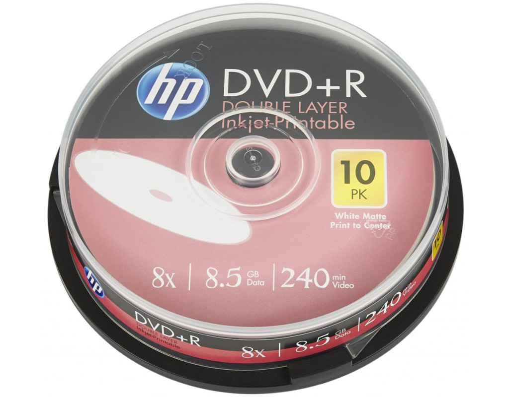 Диск DVD HP DVD+R 8.5GB 8X DL IJ PRINT 10шт Spindle (69306/DRE00060WIP-3)