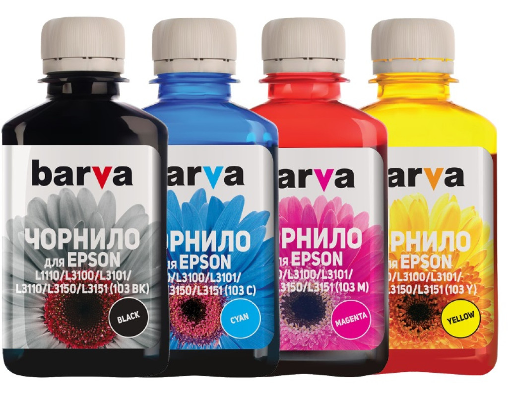 Сумісні чорнила Barva для заправки картриджів струменевих принтерів, СНПЧ та ПЗК. Усі чорнила Barva розробляються, тестуються та виробляються в Україні. Забезпечують точну передачу кольору та півтонів на фотографіях при друці на всіх видах спеціального фотопаперу Barva. Чорнила розфасовані в спеціальні флакони для зручної заправки. Новий поліетиленовий флакон має спеціальну насадку-ноcик, що дозволяє легко заправляти ПЗК і контейнери СНПЧ без шприців. Чорнила ТМ Barva повністю сумісні з чонилами ТМ Patron! Умови зберігання - при температурі від 5° до 30° С. Сумісність з друкувальними пристроями: | - Принтер струменевий L1110 A4 Epson (C11CG89403)