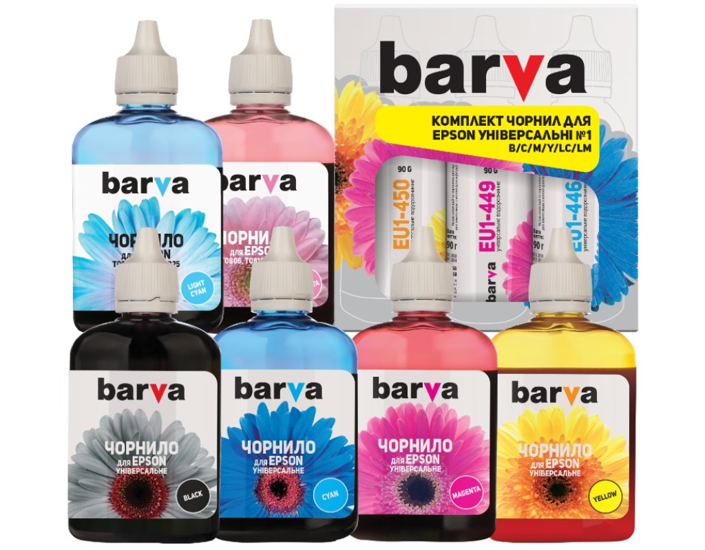Комплект водорозчинних чорнил для принтерів Epson. Складається з шести баночок різних кольорів. Об’єм однієї пляшки складає 90 грамів. Такої кількості фарби вистачить для друку великої кількості документів та фотографій. Друк фото краще здійснювати на спеціальному фотопапері. |