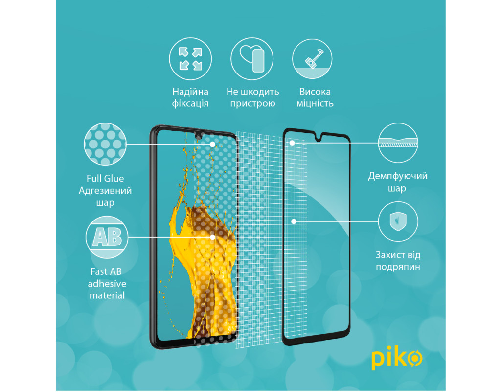 - Клейовий шар нанесений на всьому склі. Завдяки цьому, забезпечує надійну та сильну фіксацію всього скла, а не лише його країв. У разі потреби таке скло можна легко зняти без ризику пошкодити екран або його покриття.