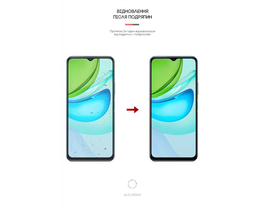 Властивість Auto-Repair — завдяки використанню гідрогелю, плівка відновлюється після косметичних подряпин і потертості впродовж 24 годин.
