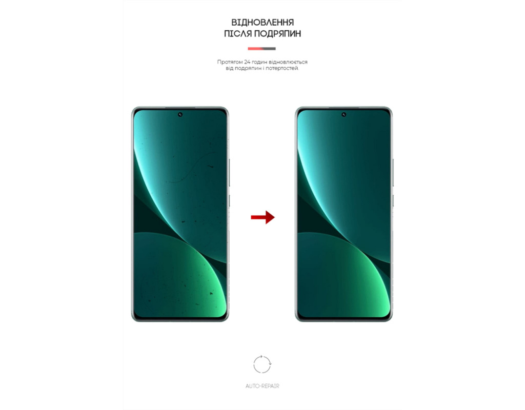 Властивість Auto-Repair — завдяки використанню гідрогелю, плівка відновлюється після косметичних подряпин і потертості впродовж 24 годин.