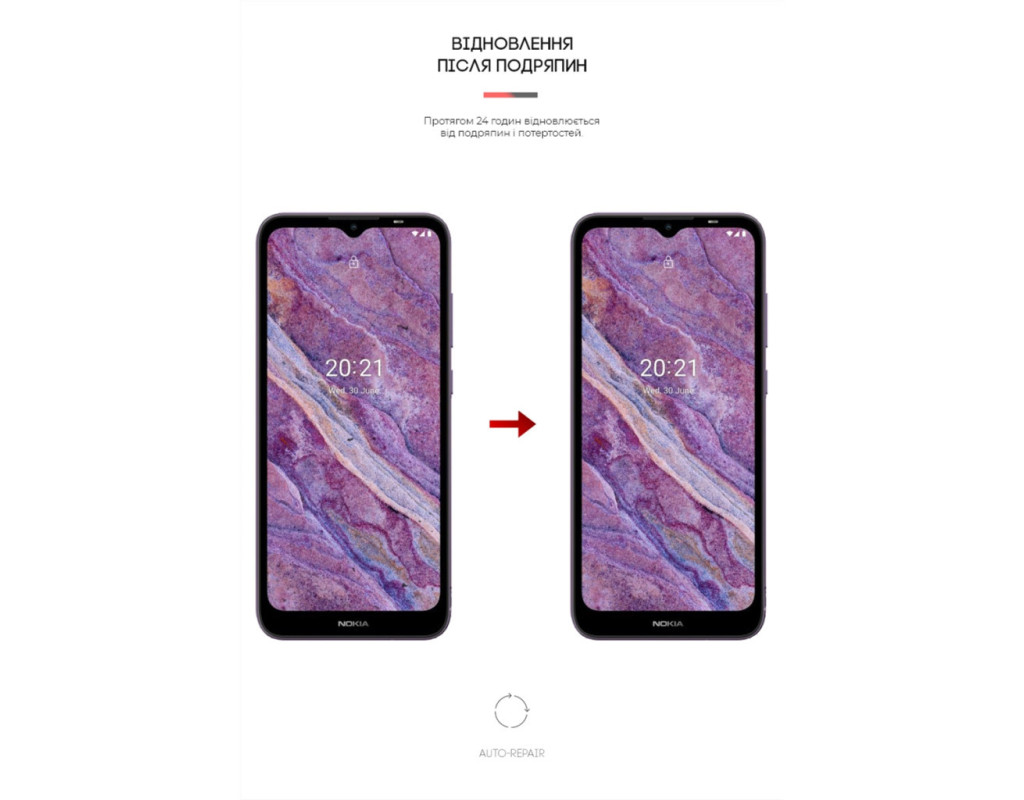Властивість Auto-Repair — завдяки використанню гідрогелю плівка відновлюється від косметичних подряпин і потертостей упродовж 24 годин.