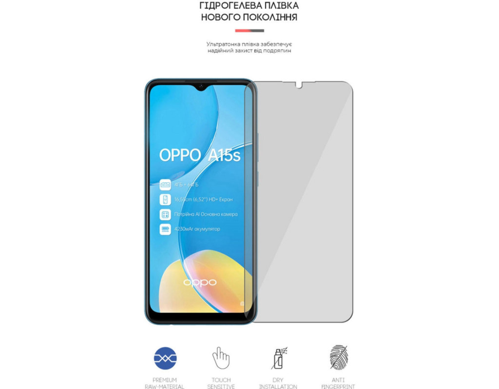 Призначення - для телефону, Вид покриття - глянсове, гідрогелева, Сумісність з моделями - Oppo A15s