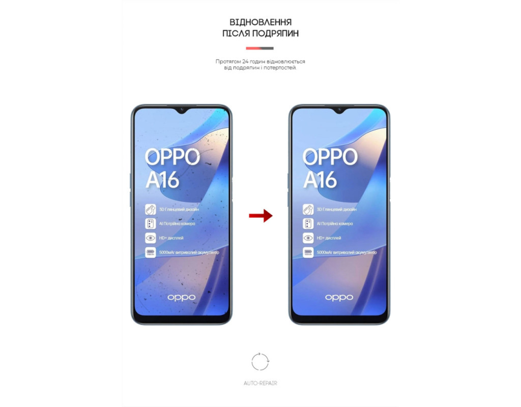 Призначення - для телефону, Вид покриття - глянсове, гідрогелева, Сумісність з моделями - Oppo A16