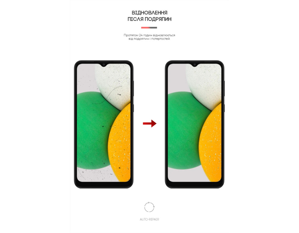 Властивість Auto-Repair — завдяки використанню гідрогелю плівка відновлюється від косметичних подряпин і потертостей упродовж 24 годин.
