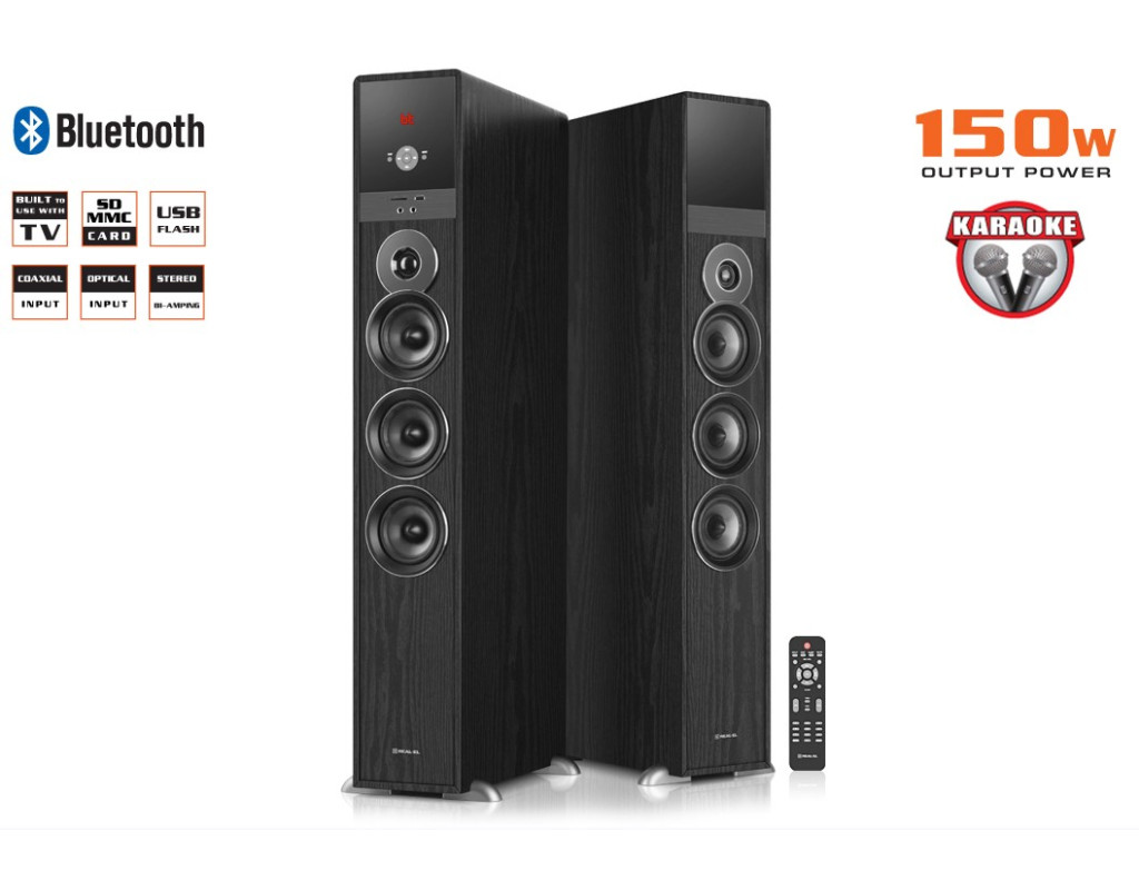 дротове, бездротове, 2.0, USB, SD, Bluetooth 5.0, Optical, AUX, 1 x 1/4", Потужність, Вт - 150, деревина (MDF), блутуз колонки