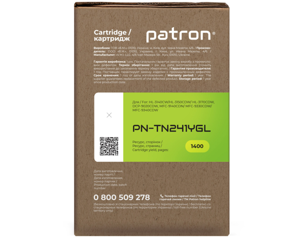 | Тонер-картридж сумісний Brother TN-241Y, жовтий Green Label Patron (PN-TN241YGL) оптимальне рішення для лазерних принтерів та БФП. Основні властивості