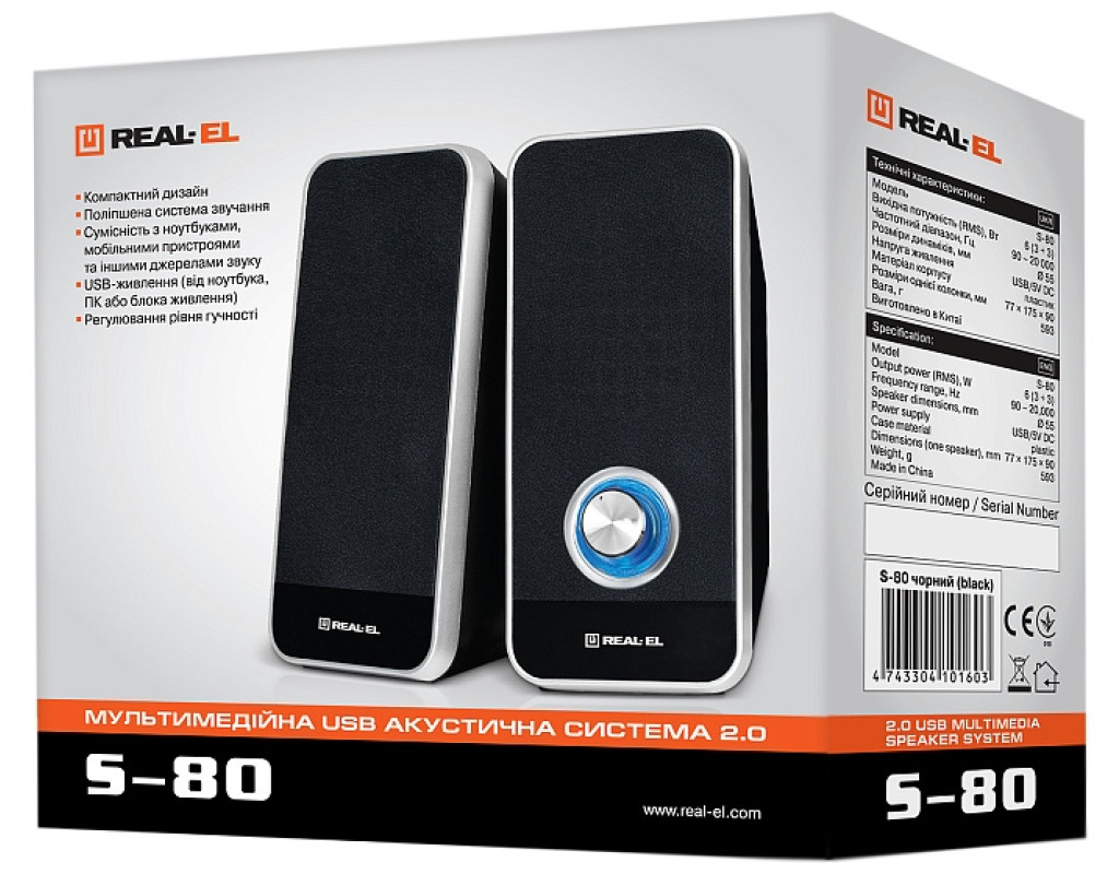 | Акустична система REAL-EL S-80, USB, black — це чудове рішення для тих, хто цінує якісне звучання та зручність у користуванні. Ці колонки створені спеціально для оптимального аудіовідтворення на комп'ютері, не займаючи багато місця на робочому столі. Вони ідеально підходять як для дому, так і для офісу, забезпечуючи користувачів чітким і насиченим звуком. REAL-EL S-80 — це двосмугова акустична система з конфігурацією 2.0, що робить їх чудовим вибором для відтворення музики, перегляду фільмів або ігор. Незважаючи на компактні розміри, колонки забезпечують сумарну потужність 6 Вт, що гарантує відмінну якість звуку навіть на максимальному рівні гучності. Діапазон відтворюваних частот становить від 90 до 20000 Гц, що дозволяє насолоджуватись деталізованим звучанням кожної музичної композиції. Однією з головних переваг цієї моделі є простота підключення. Колонки обладнані mini Jack 3.5 mm роз'ємом для аудіо, а їх живлення здійснюється через USB-інтерфейс, що значно спрощує процес експлуатації. Ви зможете легко підключити їх до будь-якого ноутбука чи ПК без необхідності додаткових налаштувань. Окрім чудової якості звуку, REAL-EL S-80 привертає увагу стильним та компактним дизайном. Виконані з міцного пластику, колонки не тільки виглядають естетично, але й є довговічними та легкими. Завдяки невеликій вазі у 0.59 кг, цю акустику можна зручно транспортувати у сумці разом з іншими мобільними пристроями, такими як ноутбуки, МР3-плеєри або смартфони. Колонки оснащені зручним регулятором гучності, що дозволяє без зусиль налаштувати оптимальний рівень звуку під ваші потреби. Це надає можливість насолодитися музикою, аудіокнигами або фільмами у якості, значно вищій за вбудовані колонки у більшості ноутбуків. REAL-EL S-80, USB, black — це оптимальна комбінація ціни та якості. Вони подарують вам можливість відчути справжню силу звуку без необхідності в додаткових витратах. Це ідеальний вибір для тих, хто шукає доступну, стильну та потужну акустику для щоденного використання. |