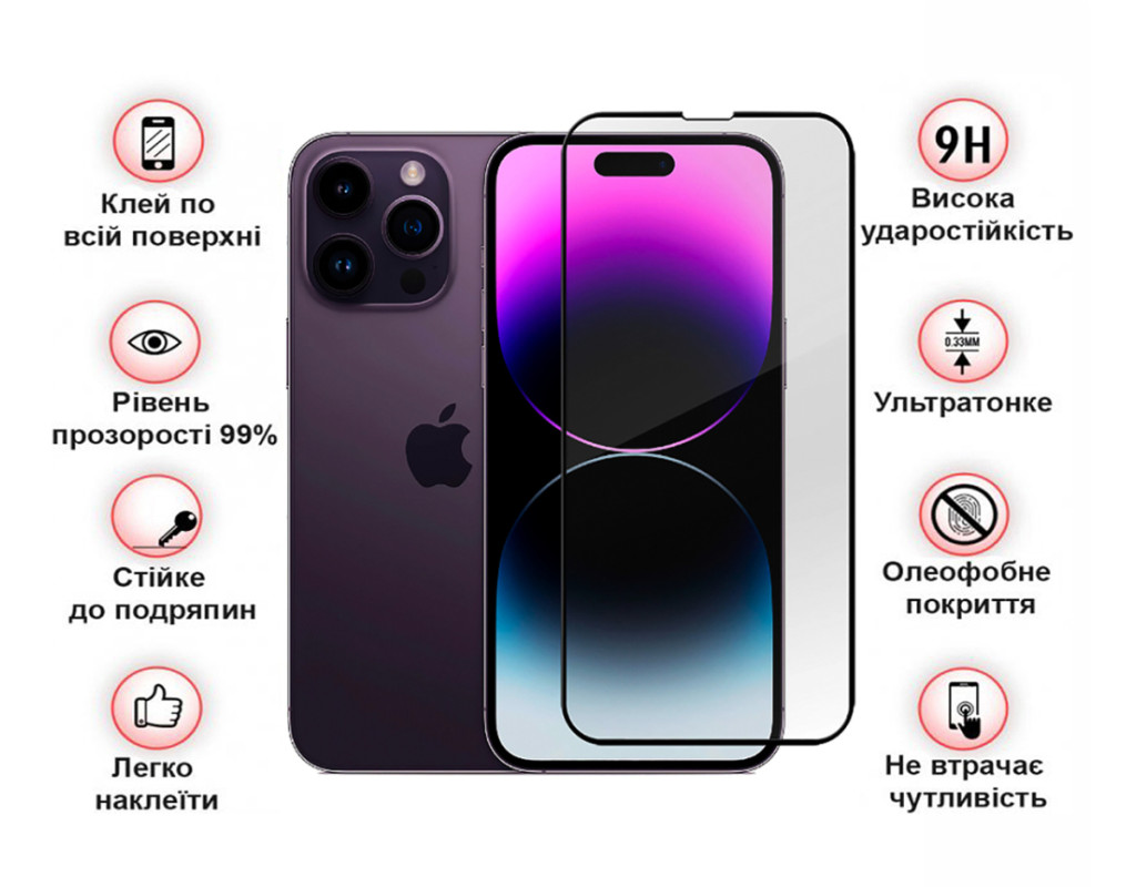 Скло захисне BeCover Apple iPhone 14 Pro Black (707968)