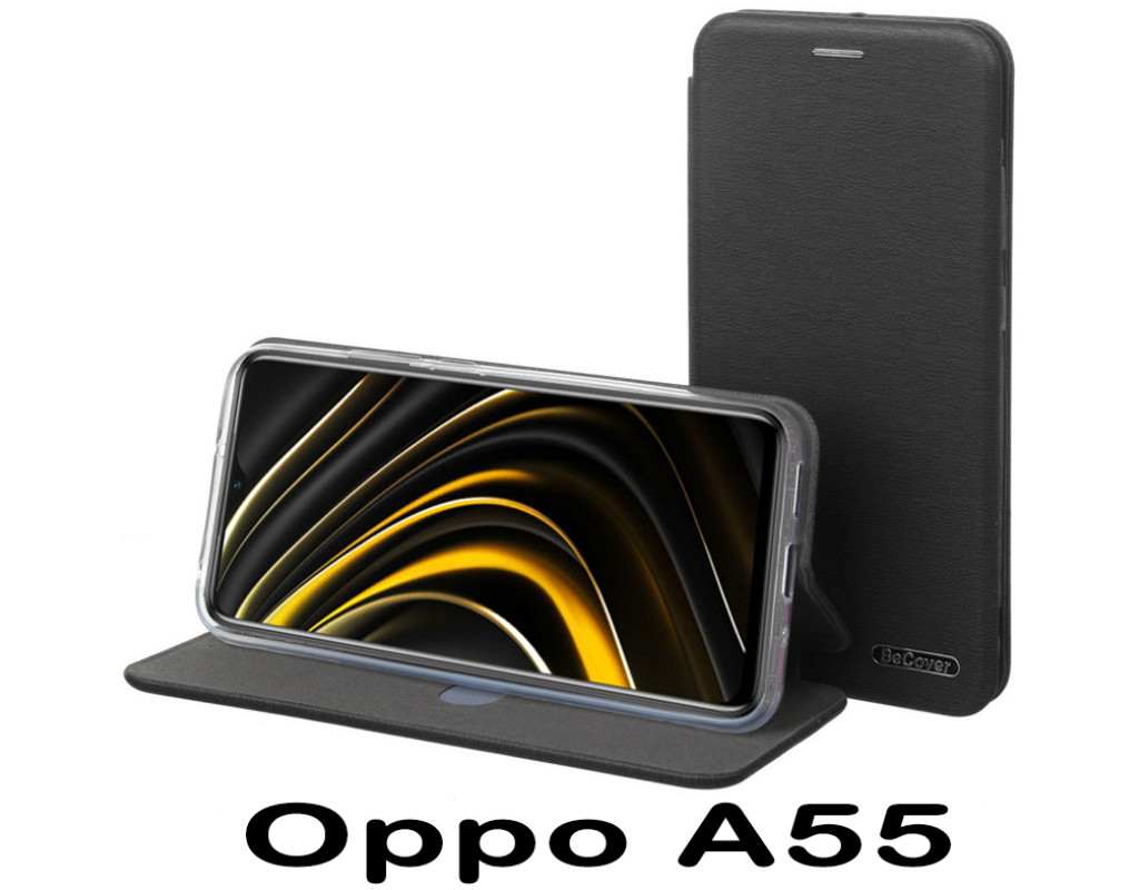 сумісність з моделями - OPPO A55, Тип чохла для телефону - книжка, Призначення - модельний, Колір - чорний