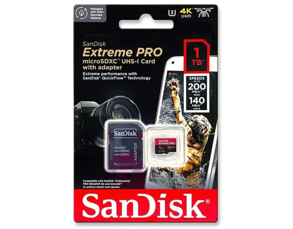 | Карта пам'яті SanDisk 1 TB microSDXC UHS-I U3 Extreme Pro + SD Adapter (SDSQXCD-1T00-GN6MA) — це втілення інноваційної технології для найвимогливіших завдань. Завдяки величезному об'єму в 1 ТБ, ви зможете зберігати тисячі високоякісних фотографій та годинне 4K UHD-відео, не хвилюючись про простір. Надшвидка передача даних зі швидкістю читання до 200 МБ/с дозволяє швидко переносити контент, а швидкість запису до 140 МБ/с робить можливим зйомку динамічних моментів з безпрецедентною плавністю. Ця картка створена для екстримальних умов: вона ударостійка, водонепроникна, стійка до температурних перепадів та рентгенівських променів. Це робить її ідеальним вибором для любителів екшн-зйомок на смартфонах, дронах чи камерах. Завдяки швидкісному класу UHS-I U3 та A2 для оптимізації роботи додатків, SanDisk Extreme PRO гарантує неперевершену продуктивність та комфорт використання. Ефективність роботи підвищується технологією SanDisk QuickFlow, яка забезпечує максимально швидке перенесення даних за допомогою спеціальних пристроїв для читання карток. Не пропустіть можливість зафіксувати свої пригоди надійно і якісно з SanDisk Extreme PRO. |