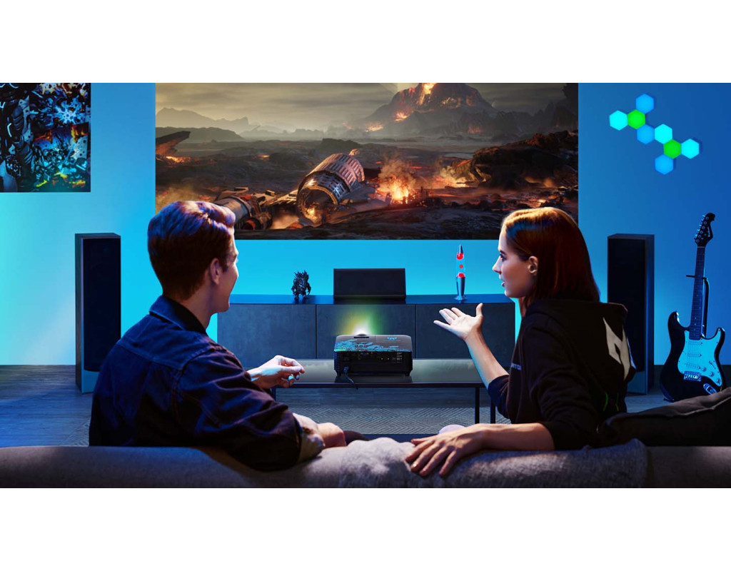 Відкрийте для себе нові горизонти в іграх завдяки проектору GM712 з технологією високої чіткості HDR10 у роздільній здатності 4K UHD і частотою оновлення до 240 Гц у роздільній здатності FHD на ПК або підберіть режим, що підтримує змінну частоту оновлення екрана як на ПК, так і на консолях. Читкий зображення Попрощайтеся з телевізором і перетворите будь-який простір на ігровий куточок за допомогою домашнього кінотеатру. Ми впевнені, що завдяки 300-дюймовому екрану з роздільною здатністю 4K UHD (хоча рекомендується 75 дюймів на відстані 2 м), ви зможете оцінити, на що здатний цей проектор. Превосхідні кольори Завдяки неперевершеному коефіцієнту контрастності, сумісності з технологією HDR10 та технології DynamicBlack™ проектор можна налаштувати для більш яскравого та детального відображення сцен. У темних сценах зберігаються насичені темні кольори, а деталі, зазвичай приховані у тіні, стають яскравішими збільшення освітленості. Швидкість — це єдиний шлях При підключенні до ПК ви можете досягти частоти оновлення до 240 Гц з роздільною здатністю 1080p на ПК1 в режимі високої частоти кадрів1 або 120 Гц з роздільною здатністю 1080p на новітніх консолях оновлення1. Змінна частота поновлення забезпечує плавність ігрового процесу без розривів. Покращене відображення графіки відбувається завдяки зменшенню або усунення затримок та/або спотворень за допомогою синхронізації швидкості оновлення екрана зі швидкістю виведення консолі чи ПК. Різноманітні режими відображення Гральний режим налаштовує зображення відповідно до перевагами. Збільште контрастність і рівні чорного кольору для занурення в середу або виявлення супротивників, які намагаються залишитися непоміченими. Додатковий режим «Футбол» також збільшує яскравість, насиченість, різкість та охоплення у яскравих сценах, забезпечуючи особливо виразне зображення. Безпровідний інтелектуальний проектор Predator GM712 працює з кількома аудіовізуальними платформами3, забезпечуючи найкращу якість звуку і дозволяючи легко підключатися до різних програм. Перегляд улюблених телепередач став ще простіше завдяки можливості бездротового підключення, динаміку 10 Вт і протимікробному пульту ДК. Створений для ефективної роботи Predator GM712 розроблений з урахуванням простоти установки та цілодобового використання, а також включає ряд функцій та технологій, що дозволяють зменшити вуглецевий слід та продовжити термін служби проектора. Екологічна проекція Екологічна технологія та режим Eco Pro дозволяють керувати потужністю лампи та приглушувати її на 30%. Термін служби лампи у такий спосіб збільшується до 15 000 годин. |