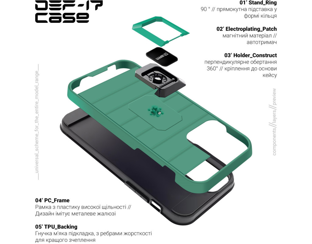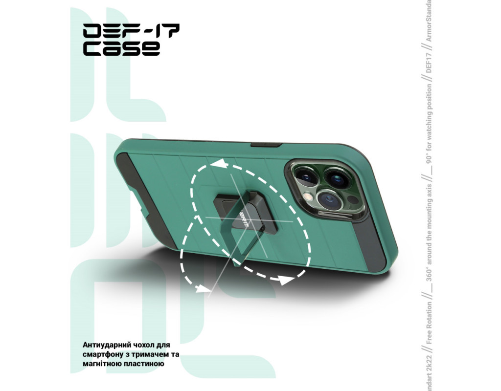 Чехол ArmorStandart DEF17 case - прочная и надежная защитная панель для смартфона. Обновленная конструкция чехла защитит смартфон более надежно. Внутренняя часть конструкции сделана из силикона с ребрами жесткости для большего сцепления с телефоном. Выступающие бортики над дисплеем и задней камерой защитят от царапин. Внешняя часть конструкции состоит из прочного пластика высшего качества и послужит дополнительным щитом при падении гаджета. На задней части панели также есть кольцо-держатель, которое в то же время служит и магнитным авто держателем. Кольцо вращается на 360 градусов и может служить подставкой для смартфона. Особенности: