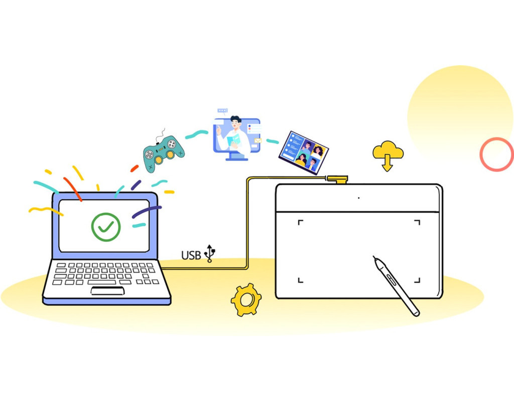 Deco Fun розроблений для простого підключення та роботи. Підключіть його і ви одразу можете починати свою творчу подорож. Для розширених налаштувань, таких як тиск пера, завантажте драйвер і виконайте просту триетапну установку.