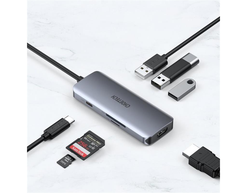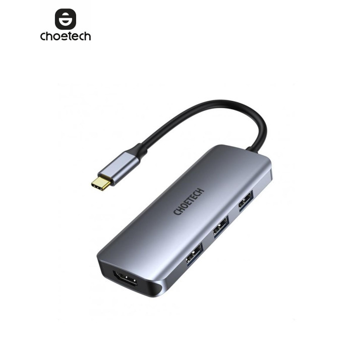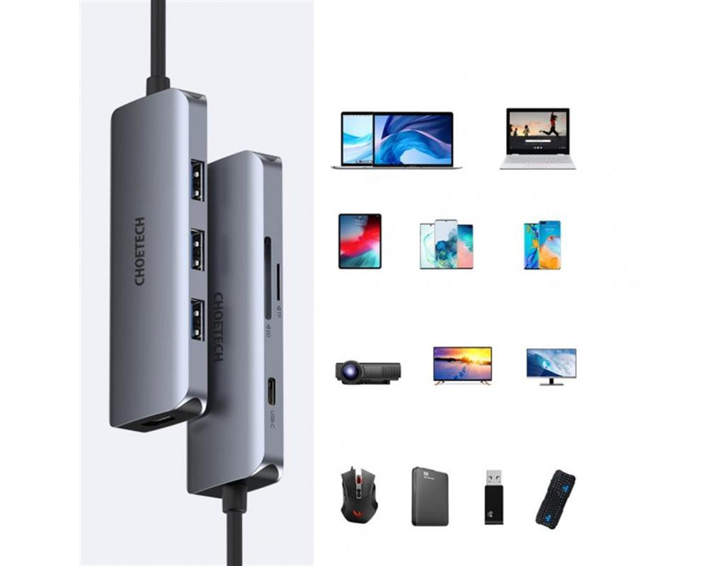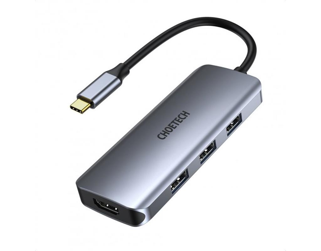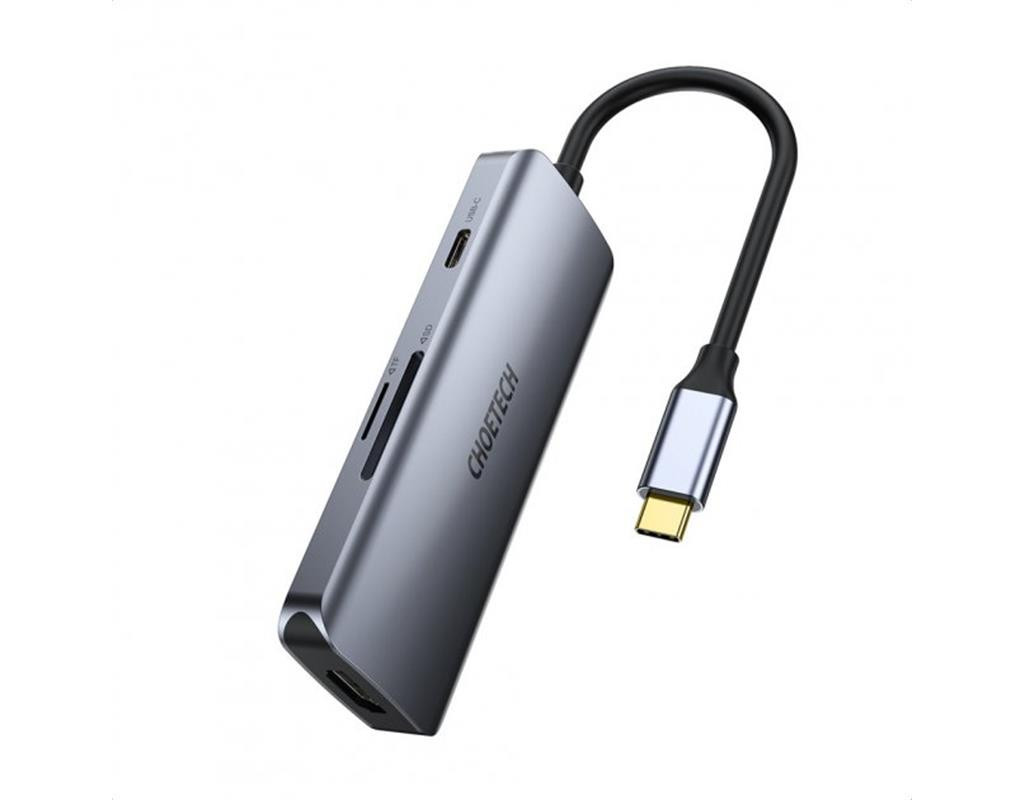 | Багатофункціональний концентратор Choetech 7in1 USB Type C - 3x USB 3.2 Gen 1 / пристрій читання карт SD і TF / HDMI 4K 30Hz / USB Type C сірий (HUB-M19 сірий):