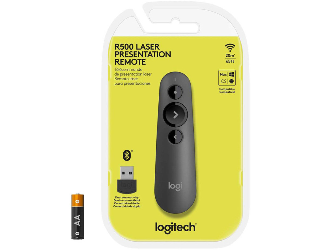Проводіть незабутні презентації, використовуючи презентер R500 з лазерною указкою. З легкістю перемикайте слайди та акцентуйте увагу аудиторії на потрібному фрагменті за допомогою червоної лазерної указки-пристрій чудово працює на відстані до 20метрів. Пульт R500 оптимізований для роботи з Windows, macOS та популярними програмами для презентацій.Завдяки лаконічному дизайну R500 (всього три кнопки, які неможливо переплутати) вам буде легко переходити від слайда до слайду, орієнтуючись лише на тактильні відчуття.Виділяйте особливо важливу інформацію за допомогою зручної вказівки з яскраво- червоним променем.Під час розробки презентера R500 з лазерною указкою враховані анатомічні особливості кисті, завдяки чому утримувати пристрій у руці дуже зручно. Покриття з м'якого прогумованого матеріалу та текстуровані кнопки гарантують, що пульт не вислизне з руки під час презентації. |