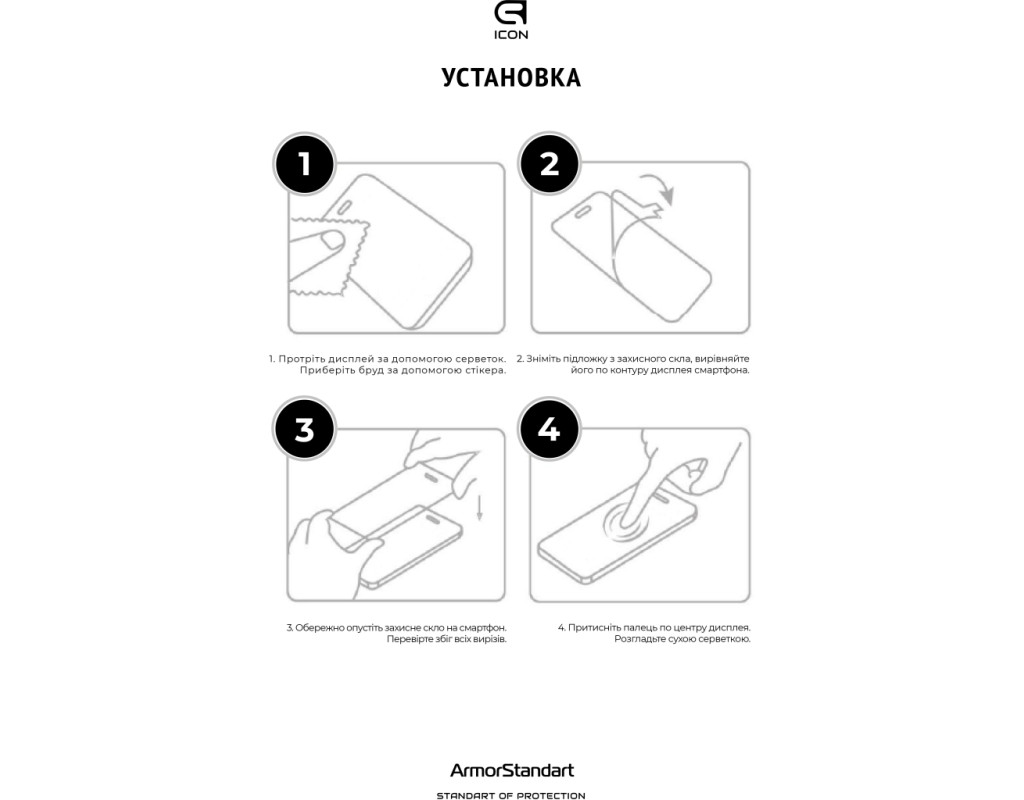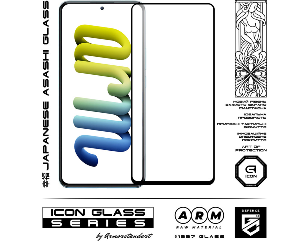 Захисне скло Armorstandart Icon Series — це новий неймовірний рівень захисту дисплеїв смартфонів. У виробництві використовується інноваційне загартоване скло, яке проходить спеціальну обробку упродовж кількох годин, для досягнення максимальної міцності й гладкості поверхні. Завдяки цьому вдалося досягти ідеальної прозорості захисного покриття без спотворень зображення, а також найкращого захисту від тріщин і подряпин. Установивши це захисне скло, чутливість дисплея ніяк не зміниться. У ньому міститься спеціальний матеріал, що перешкоджає появі відколів. Верхня частина скла містить фінально доопрацьоване олеофобне і гідрофобне покриття. Під час використання скла це забезпечує максимально природні тактильні відчуття — пальці легко ковзають по поверхні. Зображення показується з високою чіткістю і природною яскравістю. Задня частина на всій площі покрита великим клейовим шаром найкращої якості. Вдалося досягти того, що повністю немає пухирів під час первинного встановлення. Захисне скло Armorstandart Icon Series має автентичні габарити та товщину на 0,3 мм. Передбачено вирізи під усі датчики, камери та роз'єми. До комплекту входить усе потрібне для швидкого та комфортного встановлення. Особливості: