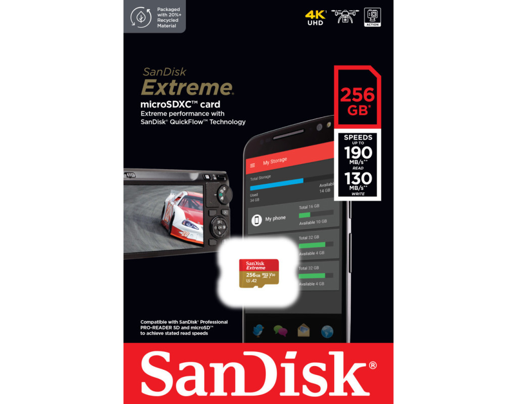 | Карта пам'яті SanDisk 256GB microSDXC UHS-I U3 Extreme (SDSQXAV-256G-GN6MN) — це ідеальне рішення для тих, хто цінує швидкість та надійність. Завдяки технології SanDisk QuickFlow вона забезпечує вражаючу швидкість читання до 190 МБ/с, що дозволяє миттєво передавати великі обсяги даних. Це особливо корисно для професіоналів, які працюють з 4K UHD відео та високоякісними фото. Карта має швидкість запису до 130 МБ/с, що дозволяє фіксувати бездоганні кадри навіть у найдинамічніших умовах. Продуктивність класу A2 робить цю карту ідеальною для швидкого запуску та роботи додатків на ваших Android-пристроях. Спроектована для екстремальних умов, вона ударостійка, водонепроникна, а також стійка до перепадів температур і рентгенівського випромінювання. Обирайте SanDisk Extreme — обирайте якість та надійність в будь-яких умовах. |