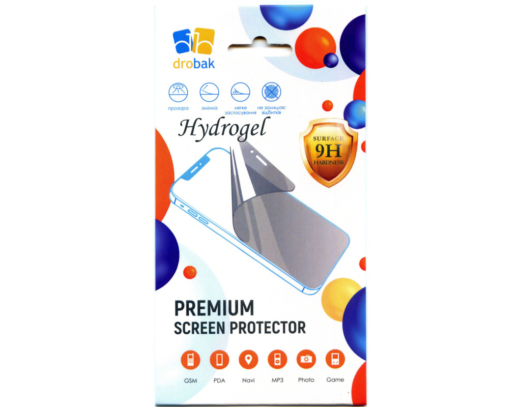 Гідрогелева плівка Drobak створена з полімерного матеріалу, що поглинає та утримує вологу. Вона має високу міцність, здатна захистити екран смартфона від появи подряпин і потертостей. Переваги плівки Drobak:
